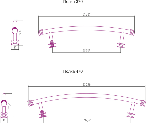 Полка 370 мм для полотенцесушителя Сунержа